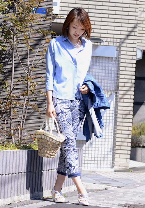 バックスタイルがポイントの新しいデザインブラウス。小さな長方形が正しく並んだ柄のエンブロイダリー刺繍レースを肩から背中にかけてあしらい、透けた生地からのぞくインナーで上品な清涼感を表現。前身頃だけボトムにタックインした着こなしがおすすめです!